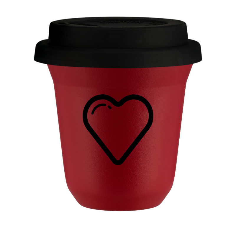 Kubek 150 ml CZERWONY "Serce", z czarną pokrywką