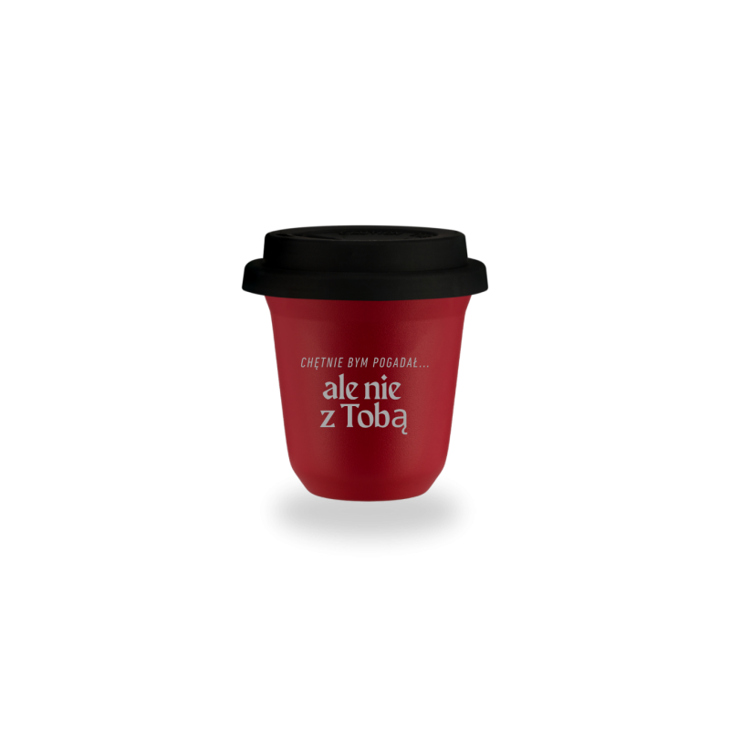 Kubek 240 ml CZERWONY "Chętnie bym pogadał ale nie z Tobą", z pokrywką czarną