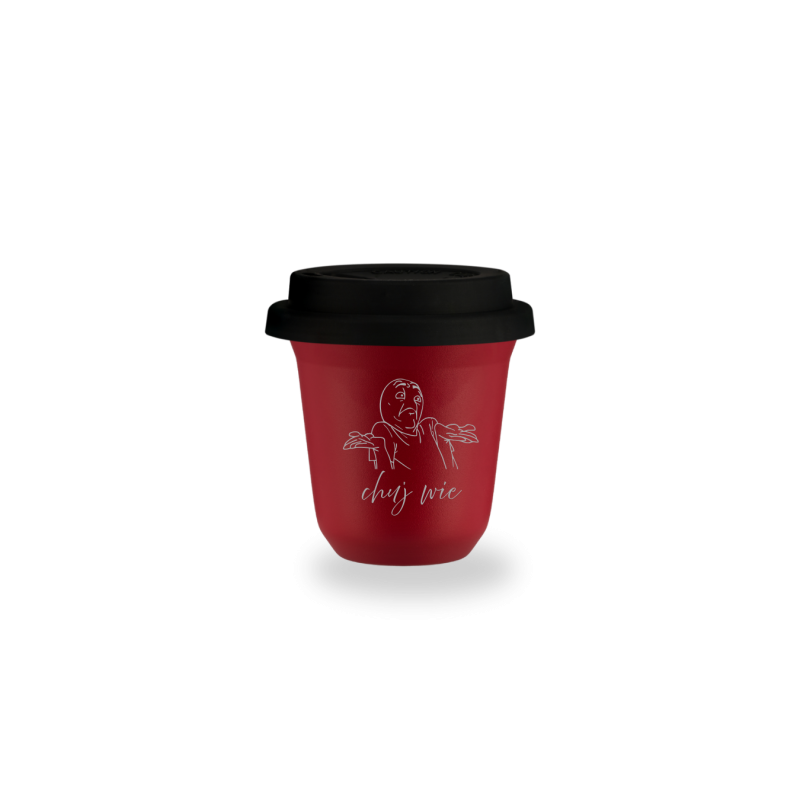 Kubek 240 ml CZERWONY "Ch*j wie", z pokrywką czarną