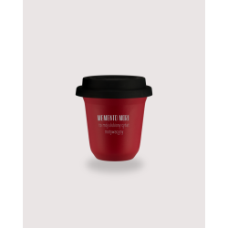 Kubek 150 ml CZERWONY "Memento Mori - to mój ulubiony cytat motywacyjny", z pokrywką czarną