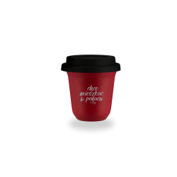 Kubek 150 ml CZERWONY "Chcę mieszkać w pałacu i ch*j", z pokrywką czarną