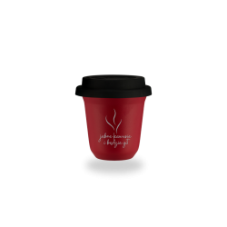 Kubek 150 ml CZERWONY "Jebnę kawusie i będzie git", z pokrywką czarną