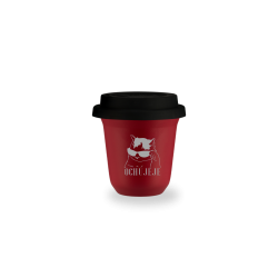 Kubek 150 ml CZERWONY "Ochójeje (z kotem w okularach)", z pokrywką czarną