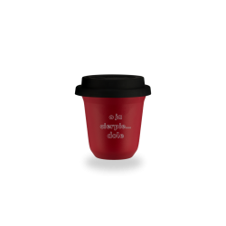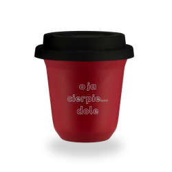 Kubek 240 ml CZERWONY "O ja cierpię dole", z pokrywką czarną