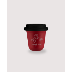 Kubek 80 ml CZERWONY "Chuj wie", z pokrywką czarną