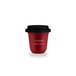 Kubek 150 ml CZERWONY "No pojebie mie zaraz", z pokrywką czarną