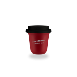 Kubek 80 ml CZERWONY "Elektryka prąd nie tyka", z pokrywką czarną