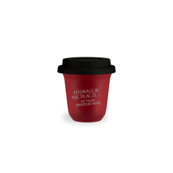 Kubek 150 ml CZERWONY "Hydraulik nie płacze - on tylko spuszcza wodę", z pokrywką czarną