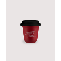 Kubek 240 ml CZERWONY "Hydraulik nie płacze - on tylko spuszcza wodę", z pokrywką czarną